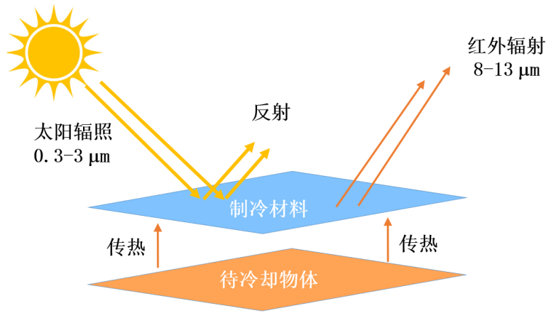 由于温室效应,全球气候变暖,人们为获得适宜的温度,通常使用风扇、空调等来降低环境温度。这些制冷装置需要消耗大量电能等能量并产生热量,对周围环境有净加热效果。被动式日间辐射制冷以外太空为冷源,通过制冷材料不断地自发向外界释放热辐射,不需要消耗任何形式的能量就能达到制冷效果,被认为是一种可以大范围使用的全新的降温方式。本案以聚合物为基体,通过孔隙结构的精细调控和有机-无机复合技术制备了一种具有高太阳辐射反射率(>98%)和高红外辐射发射率(>85%)的日间辐射制冷薄膜,无需昂贵的金属反射层,在没有额外输入能源的情况下即能达到很好的冷却效果,在建筑节能、车厢降温和防晒降温服装等领域有很好的应用前景。