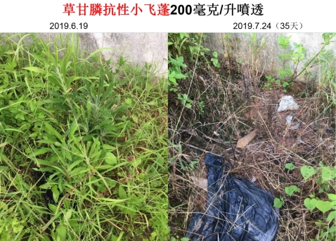 除草谱广:可作为茎叶灭生性除草剂(6~10克/亩),该除草剂对禾本科杂草和阔叶草均有很高的除草活性。