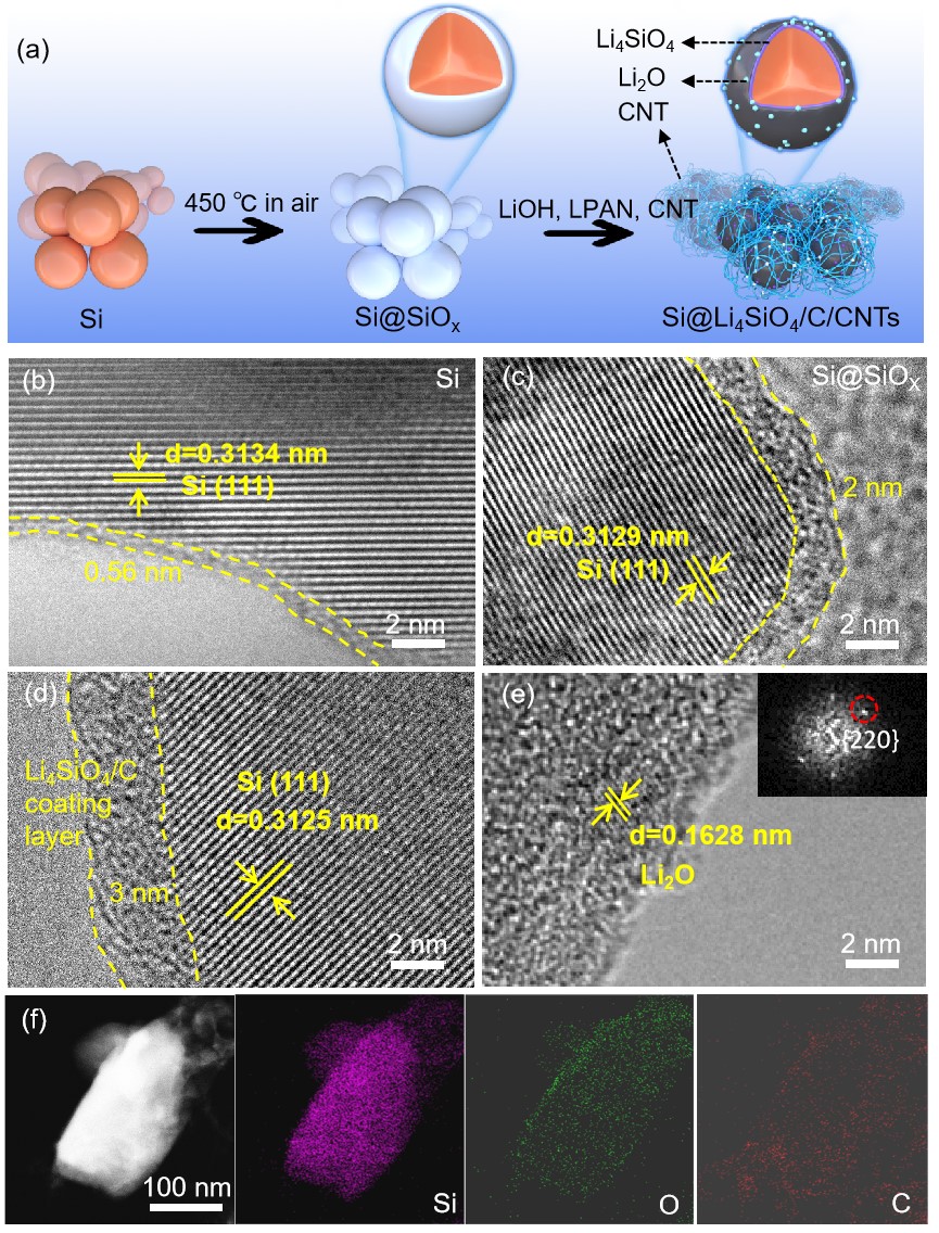 采用多级限域技术和补锂技术形成了电子、离子双导体包覆层,显著提升硅负极的循环稳定性。
