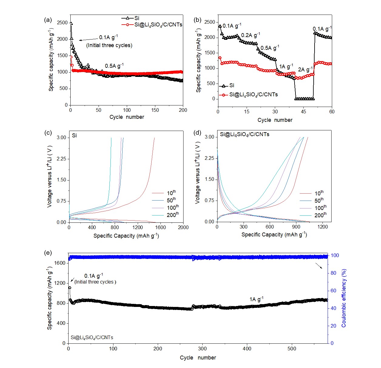 该硅-石墨烯复合负极材料循环性能优异,有望在高能量密度锂离子电池中实现产业化应用。