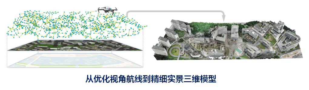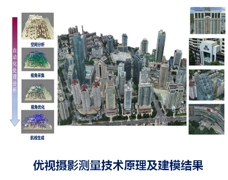 优视摄影测量是一种全新的无人机摄影测量技术方法。以快速获取生成的三维概略模型为规划依据,通过模型观测采样、可视性和可重建分析等技术方法优化选取出更适配场景对象几何结构、更符合三维重建需要的高质量观测拍摄视角,以及备选像控点位,并通过自动化的规划处理,形成无人机的航飞路线和外业像控布设方案。