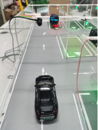 在停车场的关键角落会安装有显示屏以及摄像头,用于识别车辆车牌信息,车牌信息识别到后会根据摄像头的位置以及用户预约车位的位置经行判断,并告知用户在当前路口的行驶方向。