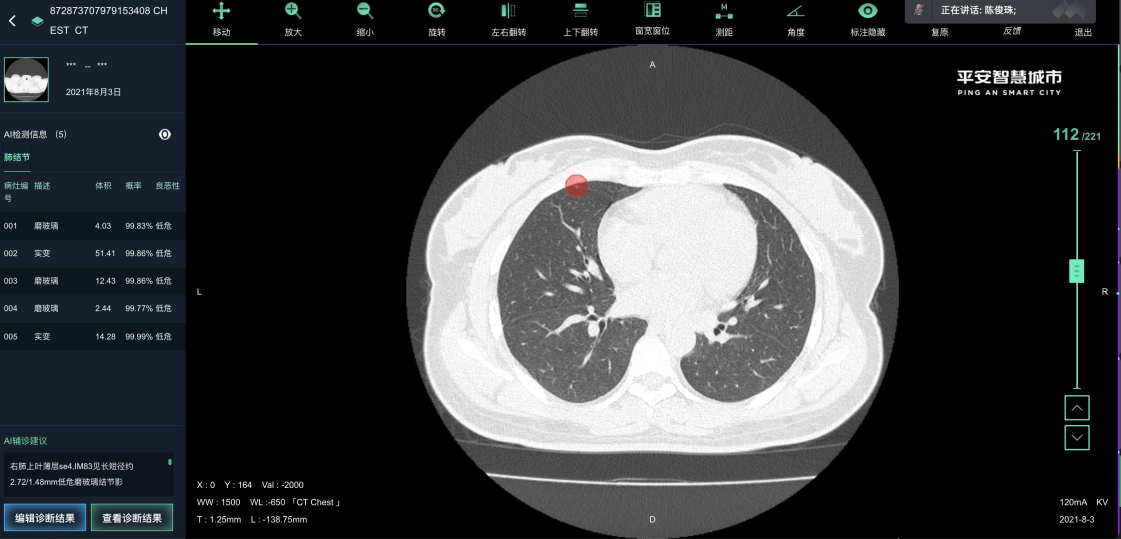 白云医疗影像系统是广州市白云区卫健委推动健全社区-中心医院体系的中间平台。白云医疗影像系统联合中心平台和各个社区医院实现患者影像检查的诊断和会诊功能。从中心平台可得到各个社区医院上传的患者影像数据进行诊断和联合会诊,并将诊断报告返回给中心平台。通过点击患者影像检查单中的AI影像分析按钮,可以跳转至AI影像分析系统上查看该患者的AI影像分析结果。普通影像分析和AI影像分析的结果可以大大地提高医生对患者病情诊断的准确率和效率,加强了各级社区医院与中心医院主治医生的交流与合作,均衡了各级医院医生资源,为广大患者带来更多便利。
