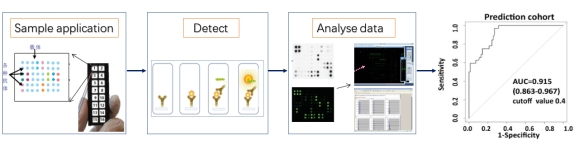 本项目优越于其它能同时检测多个蛋白质的技术,需求标本量极低,在分辨活动性结核病人和非活动性结核人群(健康对照、非结核性肺炎病人和治愈后结核病人)实现较好的敏感性和特异性的优点。我们的成果在临床诊断上的应用有利于更快更准确的发现活动性结核病人,有望用于活动性结核的筛查诊断及活动性结核的确诊、健康人群的体检及结核治疗疗效的预测评估等,为结核病疫情的控制提供强有力的技术支持。