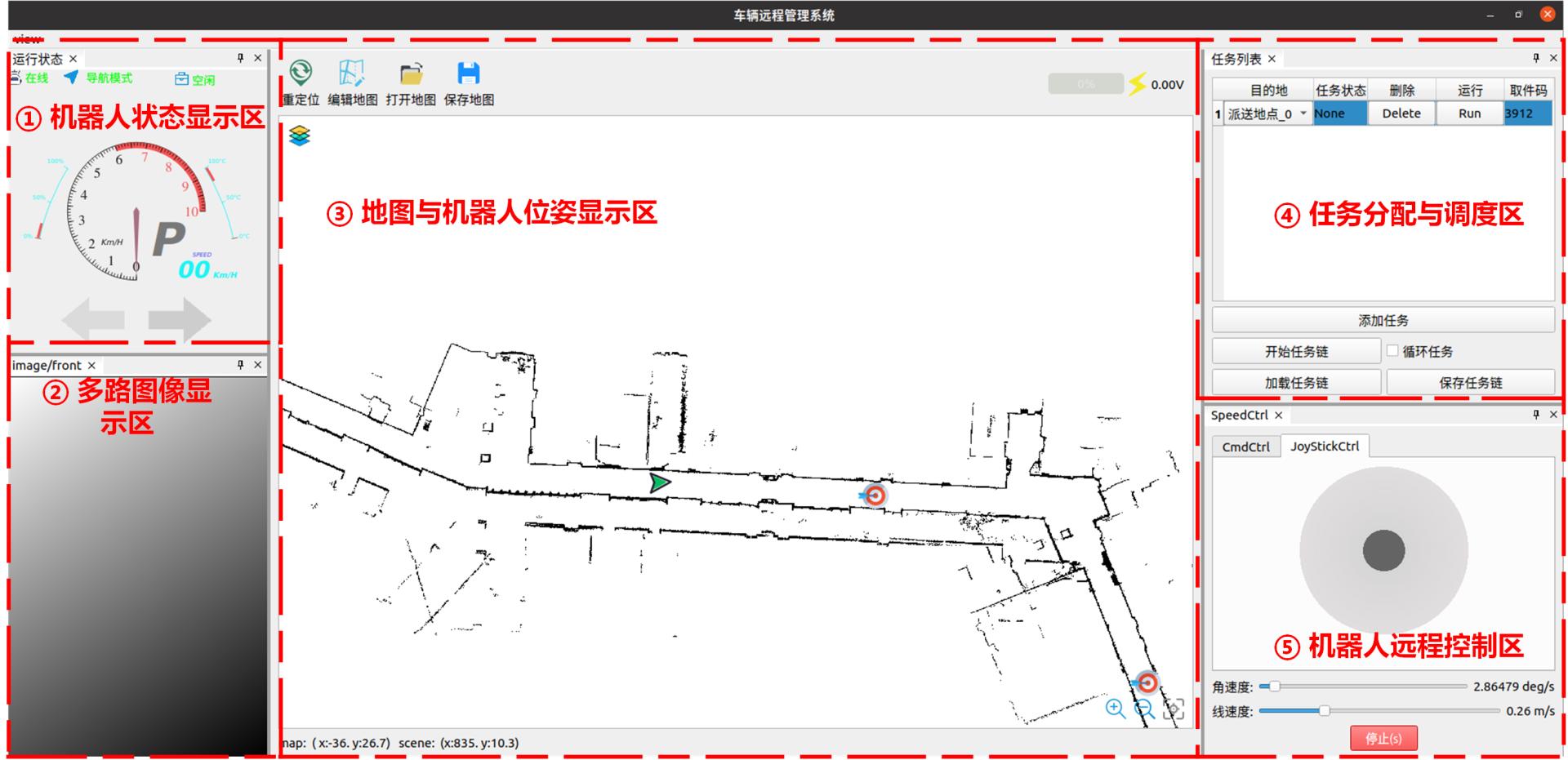 (3)构建机器人管理软件与交互系统。实现移动机器人的任务分配调度、功能执行与信息交互。