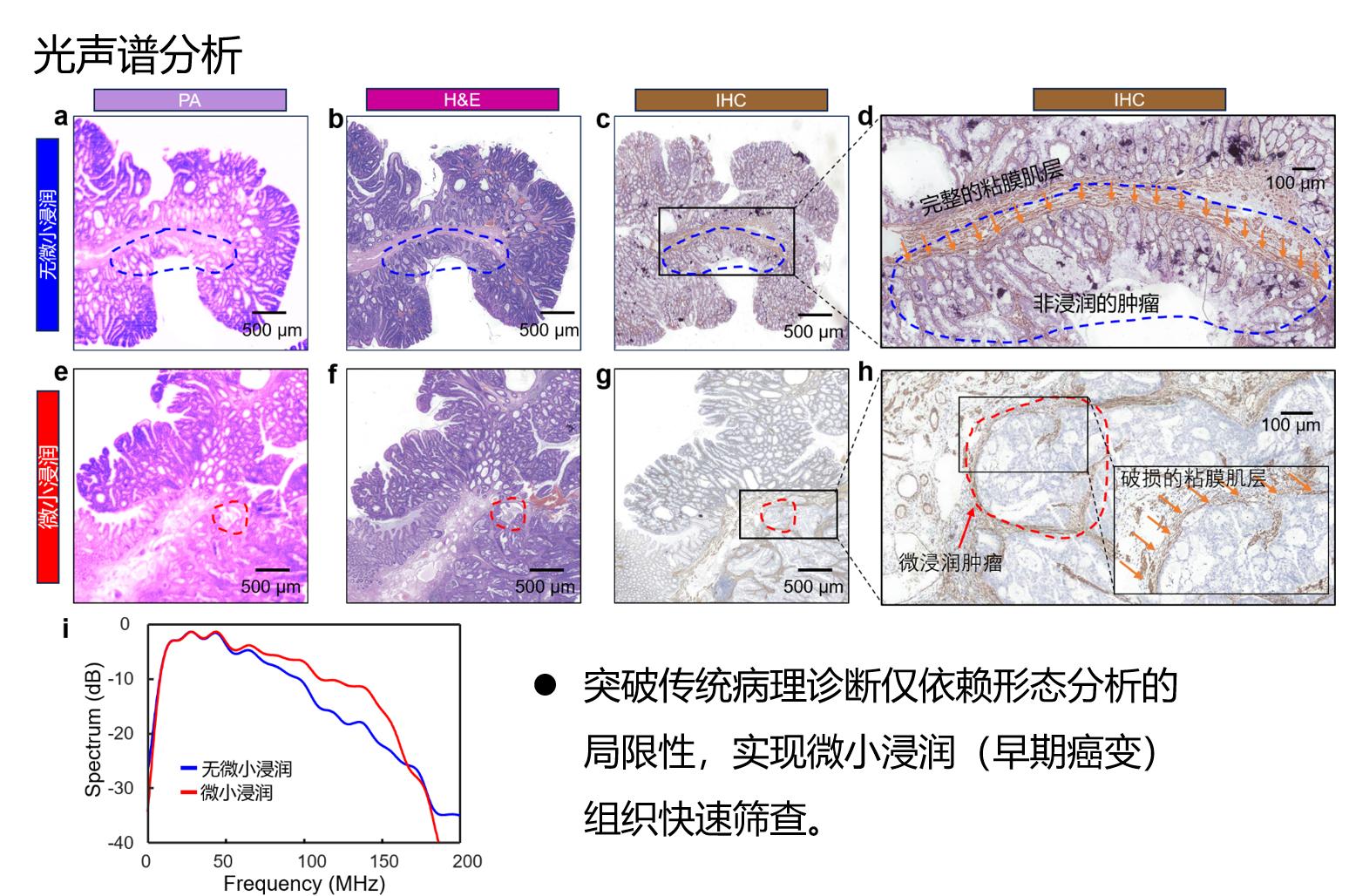 提出了一种用“光”来探测“声”的新方法,实现了超大带宽的光声信号检测,一方面,实现了单细胞层厚度的层析成像;另一方面利用宽带光声谱探测与分析技术实现了早期癌症的诊断。