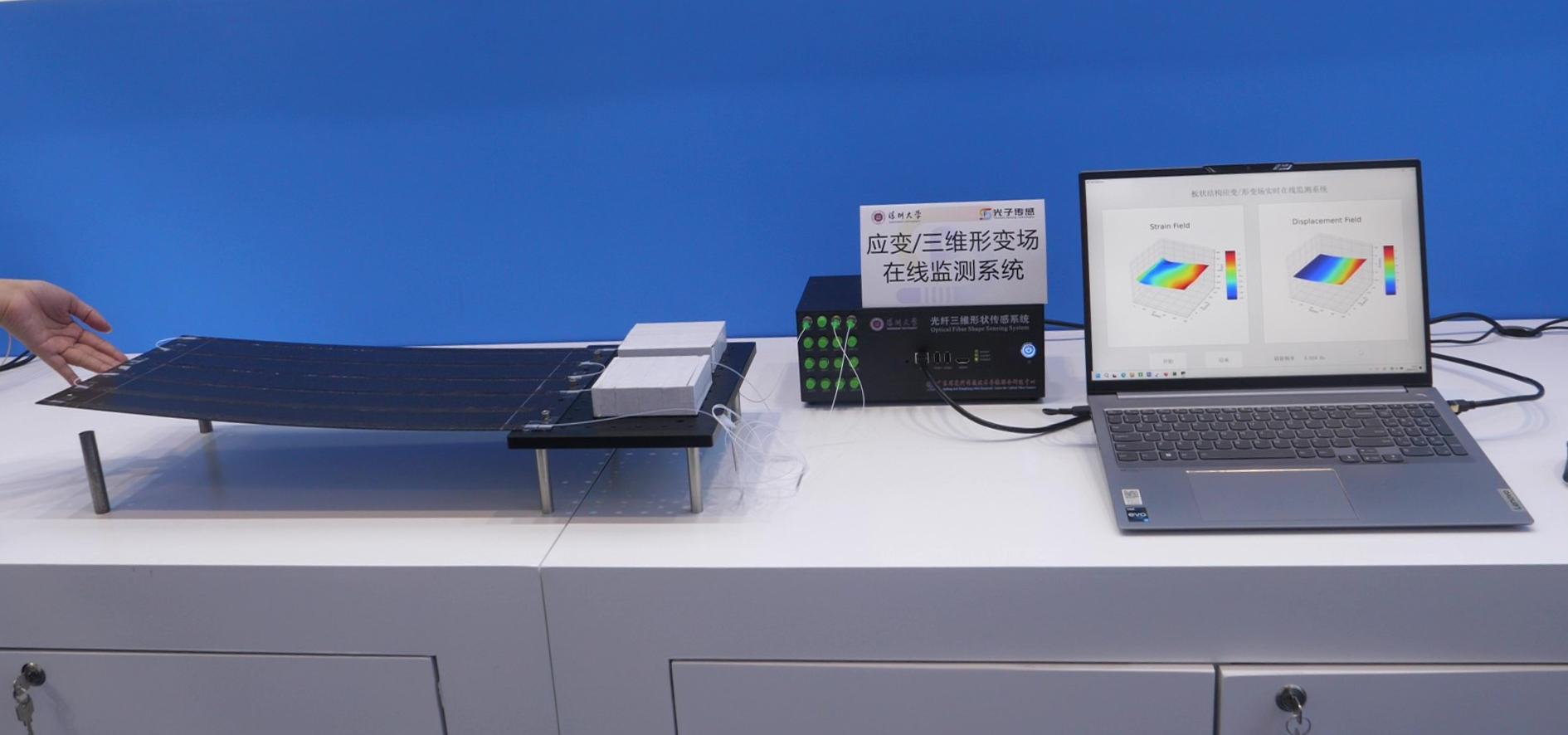 大型工程结构应变/形变场实时在线监测系统可为大型工程结构(如风电叶片、飞机机翼等)提供高精度、高空间分辨率的应变场分布及三维形变场实时在线监测。该系统的应变场与形变场实时重构精度高达99%,空间分辨率高达10 mm,实时响应频率≥5 Hz,可用于实时评估结构的健康状态,并提供安全预警功能。