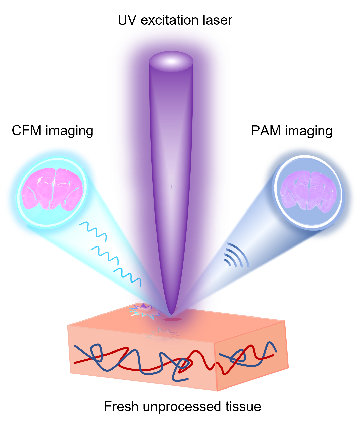 建立光声和自发荧光两种先进成像技术相融合的新一代病理诊断显微镜(HOME);结合光场调控手段,研发紫外大焦深超透镜;将常规病理检查从2~3天缩短至15 分钟内,并获得新鲜样本无标记、免切片、高分辨三维微观结构图像。