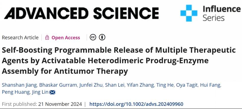 日,深圳大学医学部生物医学工程学院林静特聘教授团队在国际知名学术期刊《Advanced Science》(影响因子14.3,中科院一区,TOP期刊)上发表了题为“Self-Boosting Programmable Release of Multiple Therapeutic Agents by Activatable Heterodimeric Prodrug-Enzyme Assembly for Antitumor Therapy”的研究论文。医学部博士后江珊珊和Bhaskar Gurram为共同第一作者,林静教授为通讯作者,深圳大学为第一完成单位。该团队所在的生物医学工程学科属于广东省优势重点学科。