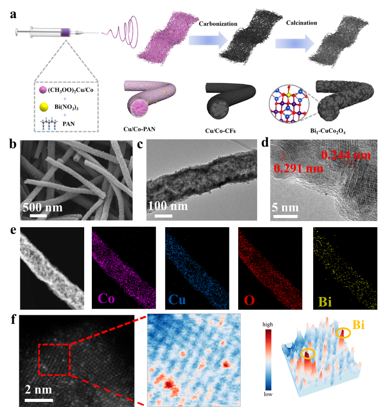 近日,深圳大学材料学院李亚运副教授团队在自然指数期刊《Advanced Functional Materials》(影响因子:18.5,中科院大类一区)上发表题为“Bi1-CuCo2O4Hollow Carbon Nanofibers Boosts NH3Production from Electrocatalytic Nitrate Reduction”的研究论文。2022级硕士生林和兴为论文的第一作者,李亚运副教授和魏金山副研究员为论文的共同通讯作者,深圳大学为唯一完成单位。