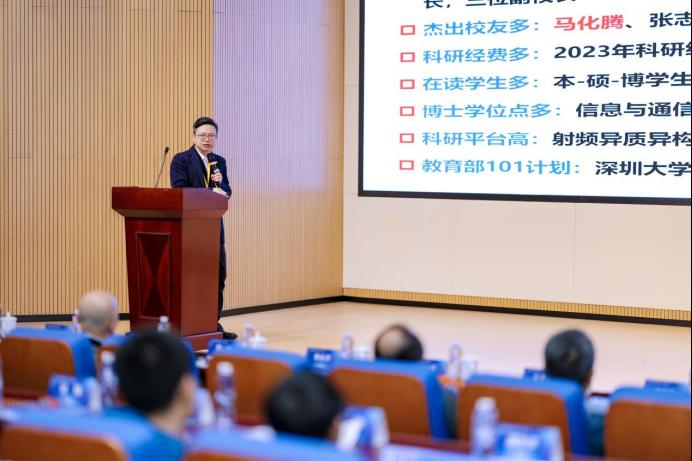 深圳大学电子与信息工程学院执行院长黄磊结合学院情况,全方位介绍了学院人才引进政策,向海内外英才发出诚挚邀请。