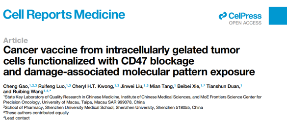 医学部高成助理教授在Cell Reports Medicine发表胞内凝胶化全肿瘤细胞疫苗研究成果