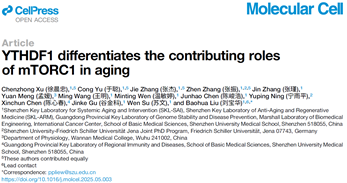 近日,深圳大学医学部基础医学院刘宝华特聘教授团队在Molecular Cell(影响因子14.5,中科院一区,TOP期刊)发表了题为“YTHDF1 differentiates the contributing roles of mTORC1 in aging”的研究论文,该研究系统揭示了YTHDF1通过调控mTORC1-SREBP2-胆固醇合成通路影响衰老进程的新机制。医学部副研究员徐晨忠、博士生于聪、博士后张杰和张振博士为共同第一作者,刘宝华教授为唯一通讯作者。深圳大学医学部为第一完成单位。