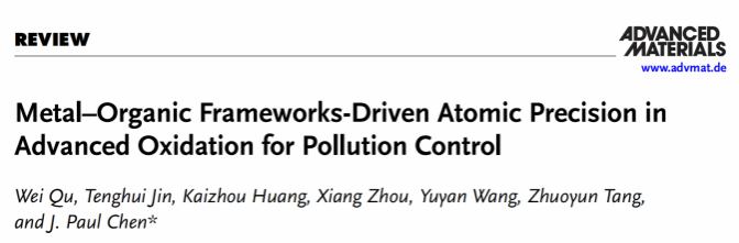 近日,深圳大学化学与环境工程学院陈嘉平教授团队在国际顶级期刊《Advanced Materials》(影响因子26.8,中科院JCR 1区,TOP期刊)发表题为《Metal–Organic Frameworks-Driven Atomic Precision in Advanced Oxidation for Pollution Control》的综述论文,该团队屈伟助理教授为论文独立第一作者,陈嘉平教授为论文独立通讯作者,深圳大学为第一通讯单位。