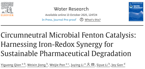 近日,深圳大学李菊英研究团队在《Water Research》(影响因子12.8,中科院1区,Nature Index期刊)上发表了题为《Circumneutral Microbial Fenton Catalysis: Harnessing Iron-Redox Synergy for Sustainable Pharmaceutical Degradation》的研究论文。该团队钱毅光副教授为第一作者,李菊英副教授为唯一通讯作者。研究成果打破了传统芬顿技术对酸性条件的依赖,大幅降低能耗与化学试剂消耗,为制药废水的低碳治理提供了新范式。