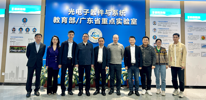 2023年3月28日下午,深圳市赛格集团有限公司董事长兼党委书记王宝、副总经理杨洪宇、人力资源部总经理孙丽娜、战略部总经理吕昊、品牌经理王军和深圳市特发信息股份有限公司项目总经理邓伟锋一行6人莅临深圳大学广东省光纤传感技术粤港联合研究中心现场考察、调研并座谈。研究中心王义平教授、何俊教授、陈宇徽教授等参加了座谈会。