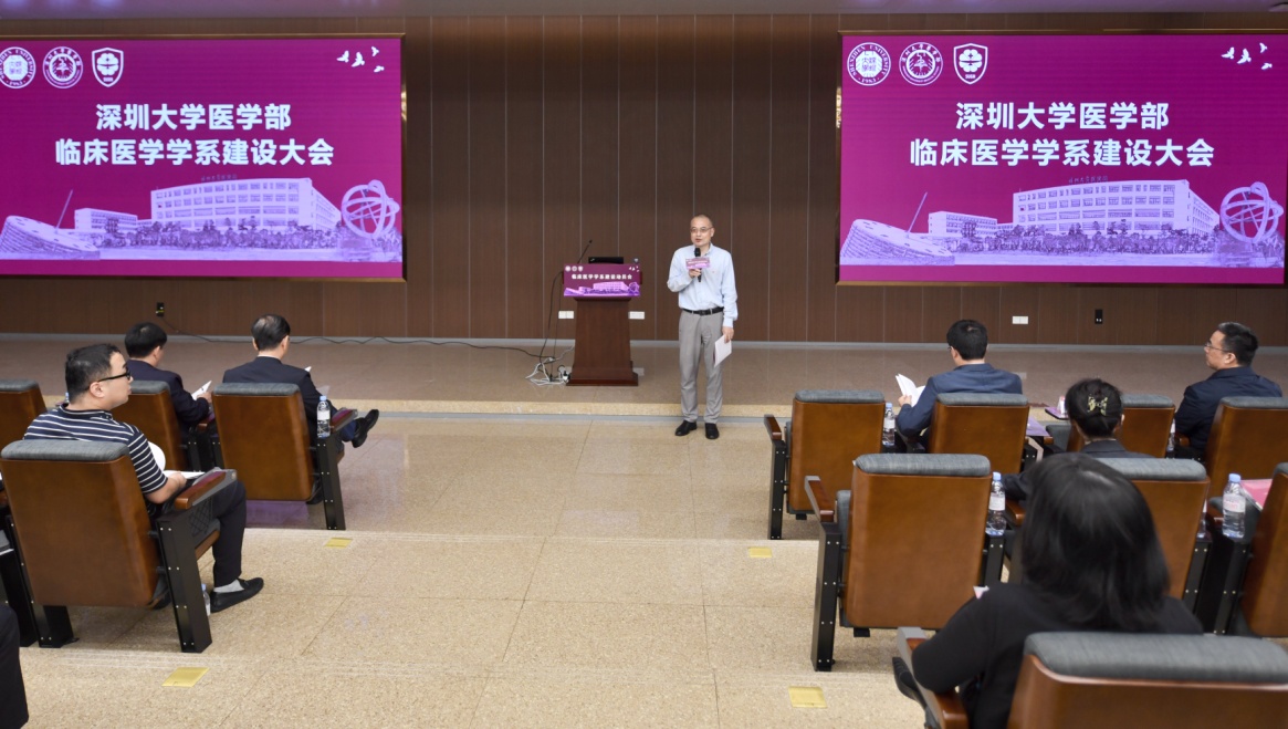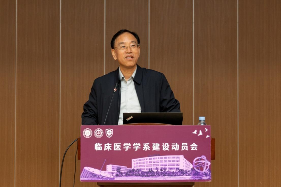 医学部主任姜保国院士在致辞中指出,发展临床医学是服务于国家战略的重点规划--粤港澳大湾区的建设,是深圳大学和医学部建设的重要增长板块。他强调,临床医学学系建设是促进附属医院临床教学同质化、推动临床医学教学质量整体提升的重要举措。临床医学学系的成立有利于促进各门学科交叉融合,加强医学部与各附属医院的融合发展,办出深大医科特色和优势。医学部正在申报临床医学博士点,要以博士点申报为契机,推进临床医学学系建设,推动临床医学学科实力和水平不断提升。他希望各位专家积极为深大临床医学学系的发展贡献力量。
