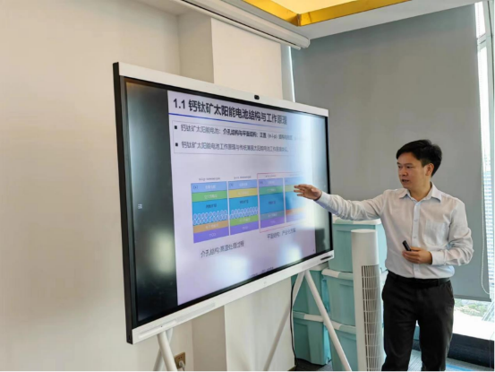 在嘉宾分享环节,李贵君老师首先就《钙钛矿太阳能电池技术——商机or泡沫》为主题展开分享,李老师介绍了钙钛矿的基本概念和钙钛矿太阳能电池的结构类型并剖析了钙钛矿太阳能电池组件的工艺流程,着重讲解了钙钛矿沉积中的狭缝涂布法和气相沉积法,其中狭缝涂布法是目前主流沉积工艺。同时李贵君老师指出钙钛矿太阳能电池技术的发展趋势是晶硅+钙钛矿叠层电池,可以有效提高光电转化效率。此外,未来科研突破需要解决钙钛矿太阳能电池的本征与热稳定性问题,才有机会实现钙钛矿光伏产业化。