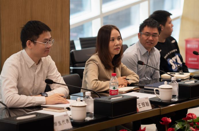 双方围绕人才培养、教学体系、就业招聘等工作进行了进一步交流。廖龙辉老师介绍了学院的专业情况,并诚邀瑞和股份有实际工程经验的工程师走进大学课堂,为深大土木学子讲授工程实践当中的现实问题。王辉翰老师也为瑞和股份介绍了学院近年来毕业生的就业概况,也希望学校与企业之间能够建立更深入的联系,为学院毕业生提供更多就业岗位。最后,一同参会的毕业生就自己关心的问题进行了提问并投递了个人简历,双方就如何开展实习、如何轮岗工作等问题进行了深入探讨。