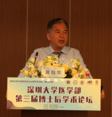 许兴智首先为大会致辞。他提到,今年是深圳大学建校40周年,也恰逢医学部成立15周年。医学部经历这15年的快速发展,其科技量值排名自2018年起持续上升,2021年排名34位;最新软科学科排名基础医学、生物医学工程学科分别是第12、14名。学部将继续贯彻落实“人才强院”战略,切实加强人才队伍建设。并代表学部向莅临本次论坛的各位领导、专家、老师、博士后、同学们表示诚挚的欢迎,向长期以来支持深圳大学博士后培养工作的各单位的全体同仁致以衷心的感谢。