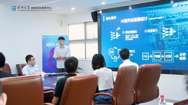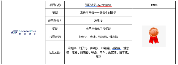智识速芯团队聚焦于智能边缘计算领域,致力于高性能、低功耗、小型化的智能加速器IP模块和相应 SoC 的设计与研发。该团队由电子与信息工程学院钟世达老师作为主要指导老师,联合袁涛教授、张沛昌老师和潘志铭老师共同指导,由来自深圳大学电子与信息工程学院、管理学院、艺术学院、经济学院等不同专业的十四名学生成员组成。智识速芯团队已拥有基于Mobilenet v2、YOLOv3等算法的可编程深度学习神经网络加速器的数字IP,可提供例如口罩识别、人脸识别、农作物病虫害识别等应用;其中基于ARM Cortex-M3处理器的高性能实时人脸口罩检测的SoC系统已经通过FPGA原型验证。在未来,智识速芯将使用自主研发的轻量化深度学习神经网络加速器,助力物联网和边缘计算行业的发展。
