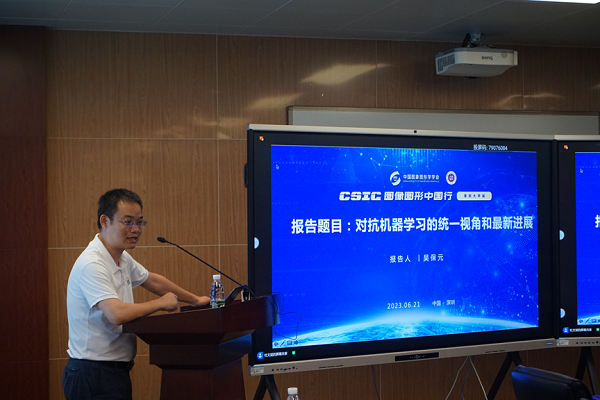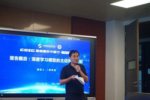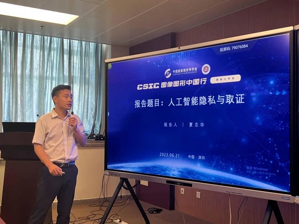 2023 年6月21日,CSIG图像图形中国行来到深圳大学,本次研讨会旨在定位于人工智能安全威胁与知识产权保护等前沿技术,展示该领域最新的研究成果,并讨论研究中面临的难题与挑战。活动主办单位包括中国图象图形学学会(CSIG)、广东省图象图形学会,承担单位包括CSIG 数字媒体取证与安全专委会、深圳大学电子与信息工程学院(广东省智能信息处理重点实验室)、中山大学网络空间安全学院。本次会议得到了广泛关注,吸引了来自香港城市大学、重庆邮电大学、海南大学、湾区大学、中山大学、深圳大学等高校师生前来参会。