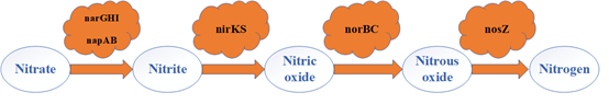 图5 基于功能基因鉴定的(a)All genus,(b)Thiobacillus和(c)Thauera的硝酸盐还原途径的基因丰度