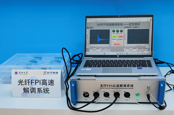 在展位现场,王义平教授团队为参展观众现场演示了光纤三维形状传感系统、分布式光纤二维温场传感系统、分布式光纤声波传感系统、光纤麦克风、光纤FPI高速解调系统等国内领先的新一代光纤传感专业设备,以及飞秒激光全自动制备大规模光纤光栅阵列传感器、3D打印光纤端面微透镜组、蓝宝石光纤高温传感器、水下爆压传感器、色散补偿啁啾光纤光栅、高功率激光器光纤光栅等光纤传感器及核心组件,产品获得了同行的高度认可和赞扬。