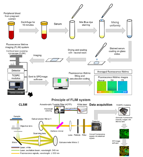 图1.用FLIM技术诊断子痫前期的工作流程示意图
