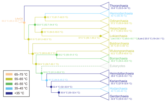 图1阿斯加德古菌最适生长温度的演化过程