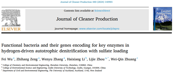 近日,深圳大学化学与环境工程学院周礼杰副教授团队在期刊《Journal of Cleaner Production》(影响因子11.1,中科院JCR 1区,TOP期刊)上发表了题为《Functional bacteria and their genes encoding for key enzymes in hydrogen-driven autotrophic denitrification with sulfate loading》的研究论文。该团队周礼杰副教授为论文第一通讯作者,硕士研究生吴菲为论文第一作者,深圳大学为第一作者单位及通讯单位。
