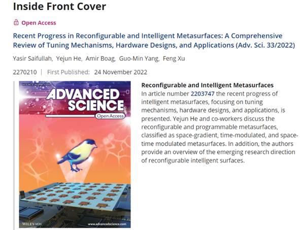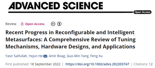 深圳大学电子与信息工程学院何业军教授团队在Advanced Science(影响因子15.1,中科院一区,TOP期刊)上发表了题为“Recent Progress in Reconfigurable and Intelligent Metasurfaces: A Comprehensive Review of Tuning Mechanisms, Hardware Designs, and Applications”的研究综述论文。电子与信息工程学院博士后Yasir Saifullah为第一作者,何业军教授为通讯作者,深圳大学为第一作者单位和通讯单位。