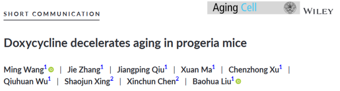 医学部基础医学院刘宝华教授团队在Aging Cell杂志在线发表了题为“Doxycycline decelerates aging in progeria mice”的研究论文。基础医学院副研究员王明为论文第一作者和共同通讯作者,刘宝华特聘教授为通讯作者,深圳大学为唯一完成单位。