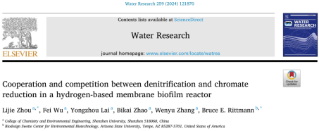 近日,深圳大学化学与环境工程学院周礼杰团队与美国工程院院士Bruce E. Rittmann在环境工程领域顶级期刊《Water Research》(Nature Index期刊;影响因子12.8;中科院JCR 1区,TOP期刊)上联合发表题为《Cooperation and competition between denitrification and chromate reduction in a hydrogen-based membrane biofilm reactor》研究论文。该团队周礼杰副教授为论文第一作者及共同通讯作者,深圳大学为第一作者单位及第一通讯单位。