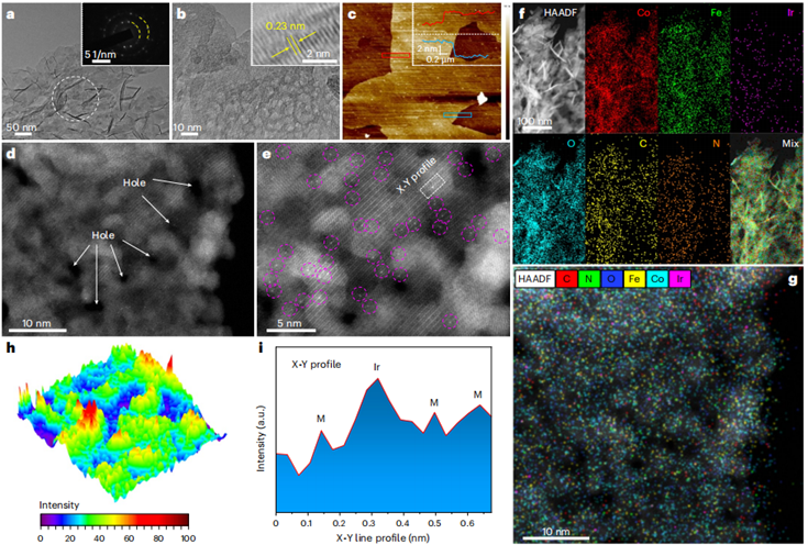 图1. Ir/(Co,Fe)-OH/MI催化剂的结构表征
